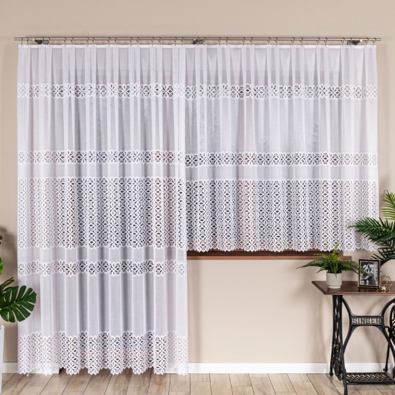 ADRIANNA Firanka żakardowa gotowa na prosto, szerokość 300 x wysokość 250cm, kolor 001 biały 018869/FBP/001/300250/1