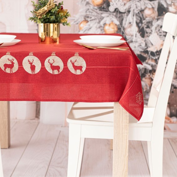 BŁYSZCZĄCY RENIFER Obrus z haftem, szerokość 120cm x wysokość 160cm, kolor 003 czerwony 295157/KSP/L03/120160/1