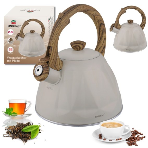 CZAJNIK 2L Z GWIZDKIEM KINGHOFF KH-1998 BEŻOWY MAT