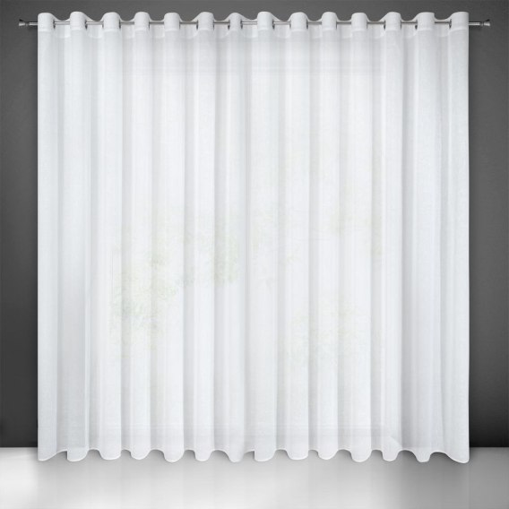 Delikatna firana w pięknym kolorze uszyta z tkaniny o strukturze drobnego deszczyku doskonale przepuszcza światło. Łatwa w prasowaniu i praniu dekoracja. szerokość: 400 cm, długość: 250 cm, kolor: biały, Gramatura: 90 GSM, Skład: 100% poliester