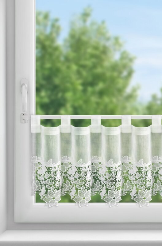 Zazdrostka gotowa zdobiona obszywką szerokość: 150 cm, długość: 40 cm, kolor: biały, Skład: 100% poliester