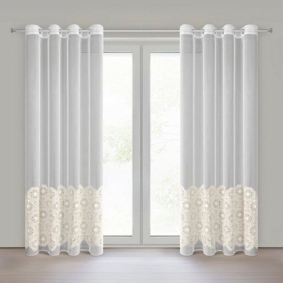 Firana gotowa z aplikacją szerokość: 140 cm, długość: 250 cm, kolor: beżowy, Skład: 100% poliester