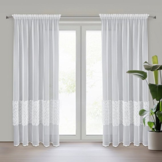 Firana gotowa zdobiona aplikacją szerokość: 140 cm, długość: 270 cm, kolor: biały, Skład: 100% poliester