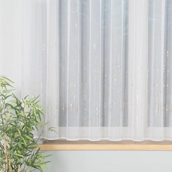 Firanka fantazyjna ze wzorem na samym dole z ołowianką, wysokość 155cm, kolor 001 biały ze złotym zdobieniem 318093/OLO/001/0001