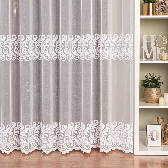 Firanka haftowana na markizecie ze wzorem pasowym, wysokość 280cm, kolor 001 biały 009366/433/001/000280/1