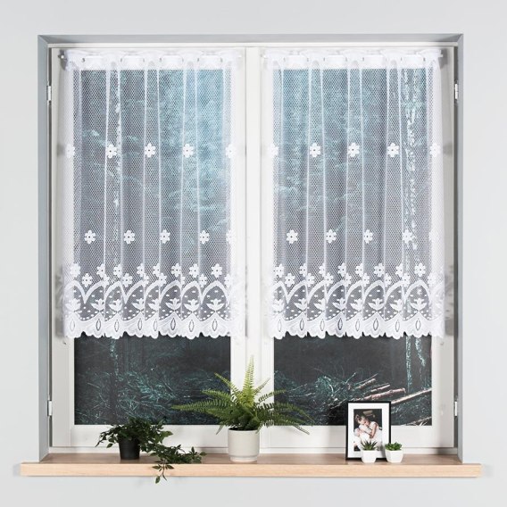 Biała firana żakardowa 004421 to produkt, który łączy w sobie elegancję i funkcjonalność. Jej lekka tkanina subtelnie przepuszcza światło, tworząc we wnętrzu ciepłą i przyjemną atmosferę. Kolor biały optycznie powiększa przestrzeń, nadając jej świeżości i jasności, co sprawia, że firana idealnie komponuje się z nowoczesnymi trendami aranżacyjnymi. Wysokość 100 cm czyni ją doskonałym wyborem do mniejszych okien – zwłaszcza kuchennych lub balkonowych – zapewniając równocześnie elegancki wygląd i komfort użytkowania.