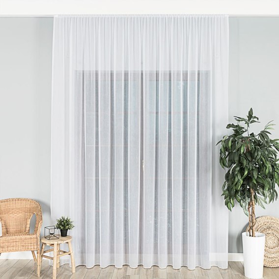 Model wykonany jest z wysokiej jakości 100% poliestru, co gwarantuje trwałość, odporność na zagniecenia i łatwość pielęgnacji. Tkanina o gramaturze 57 g/m² nie wymaga prasowania i przez długi czas zachowuje estetyczny wygląd. Firanka 951768 łączy klasyczną elegancję z praktycznością, sprawdzając się w każdym domu.
