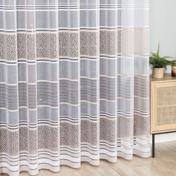 Firanka żakardowa ze wzorem pasowym, wysokość 250cm, kolor 027 stare złoto 017834/000/027/000250/1