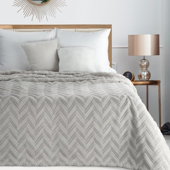Koc flano bardzo miękki w dotyku z efektem 3d szerokość: 150 cm, długość: 200 cm, kolor: srebrny, Gramatura: 340 GSM, Skład: 100% poliester