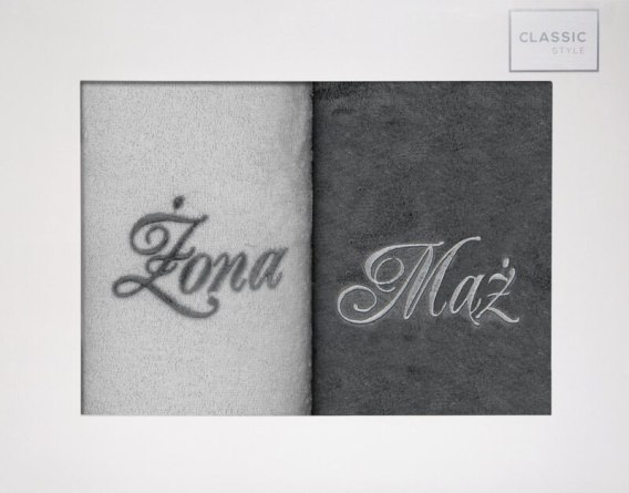KOMPLET RĘCZNIKÓW MĄŻ ŻONA SREBRNY