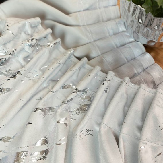 MARMA Zasłona gotowa na taśmie, szerokość 140cm x wysokość 250cm, kolor 021 pastelowy szary ze srebrnym nadrukiem na VELVI TD003