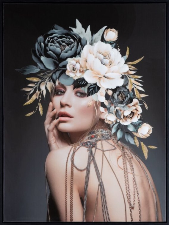 Obraz z lustrzanym wykończeniem oprawiony w ramę szerokość: 60 cm, długość: 80 cm, kolor: czarny, Skład: płótno, drewno, farba, plastik