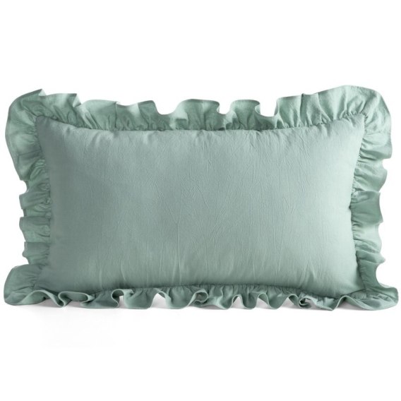 Bawełniana poszewka dekoracyjna obszyta ozdobną falbanką szerokość: 30 cm, długość: 50 cm, kolor: szałwiowy, Gramatura: 135 GSM, Skład: 100% bawełna