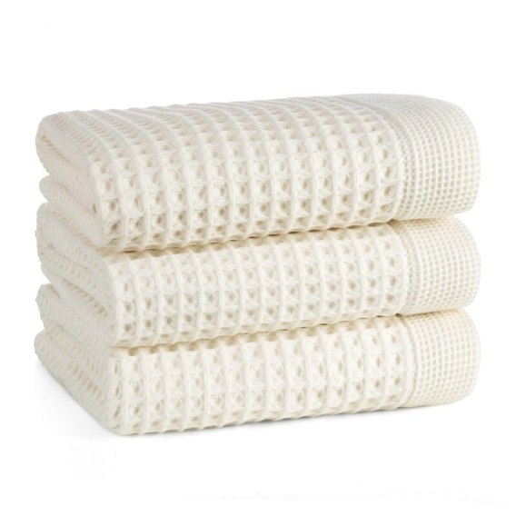 Ręcznik bawełniany o charakterystycznej waflowej strukturze szerokość: 70 cm, długość: 140 cm, kolor: kremowy, Gramatura: 400 GSM, Skład: 100% bawełna
