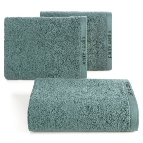 Jednokolorowy, klasyczny ręcznik kąpielowy z ekskluzywnej kolekcji Pierre Cardin zdobiony su btelną lamówką z logo projektanta. Wysokiej jakości tkanina. szerokość: 50 cm, długość: 90 cm, kolor: ciemnomiętowy, Gramatura: 430 GSM, Skład: 100% bawełna