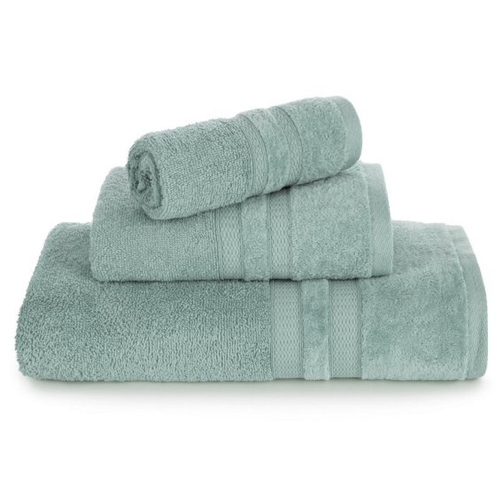 Elegancki ręcznik z delikatnej i bardzo chłonnej tkaniny frotte, jednokolorowy. Krawędzie zdobione subtelną bordiurą z welwetu. Łatwy w praniu, trwałe kolory. szerokość: 30 cm, długość: 50 cm, kolor: miętowy, Gramatura: 500 GSM, Skład: 100% bawełna