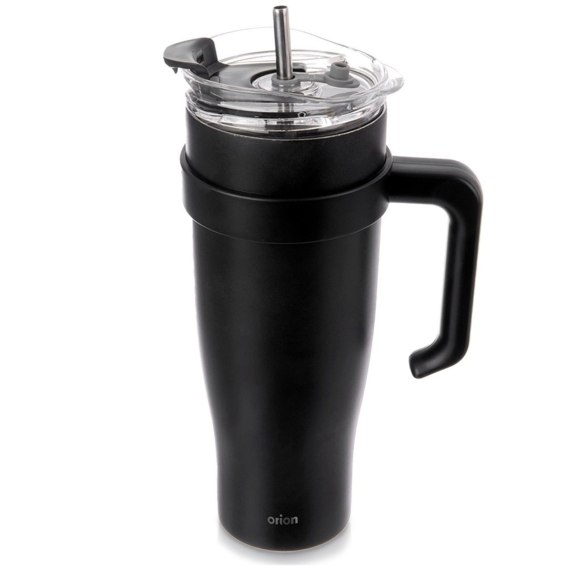 STALOWY KUBEK TERMICZNY TERMOS 1200ml Z RĄCZKĄ I SŁOMKĄ ORION 112284 CZARNY