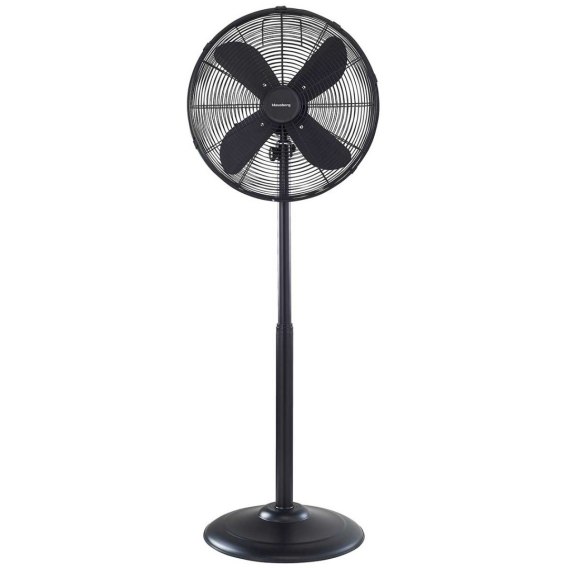 Łatwy w montażu, wentylator podłogowy, dający delikatne uczucie chłodu w upalne dni. Urządzenie posiada trzystopniową regulację prędkości nawiewu. Wyposażone jest w funkcję automatycznej oscylacji, dzięki czemu może obracać się w kierunkach bocznych. Zwiększa to zasięg oddziaływania urządzenia. Solidna podstawa zapobiega upadkowi, a możliwość regulacji wysokości za pomocą rury teleskopowej, pozwala dodatkowo na ustawienie odpowiedniego pułapu nawiewu. Wentylator wykonany jest z metalu w kolorze czarnym co nadaje mu elegancką, nowoczesną formę.