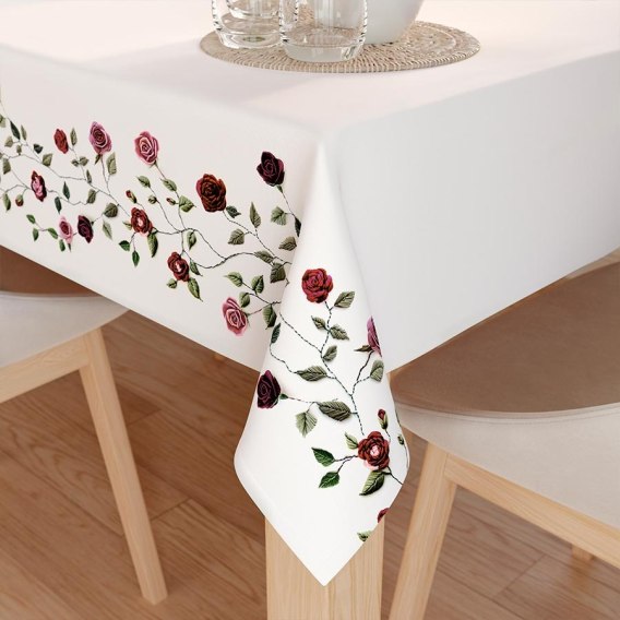 WYSZYWANE RÓŻYCZKI Tkanina dekoracyjna NINA WODOODPORNA, 160cm, kolor 001 biały D00326/NIW/001/160000/1