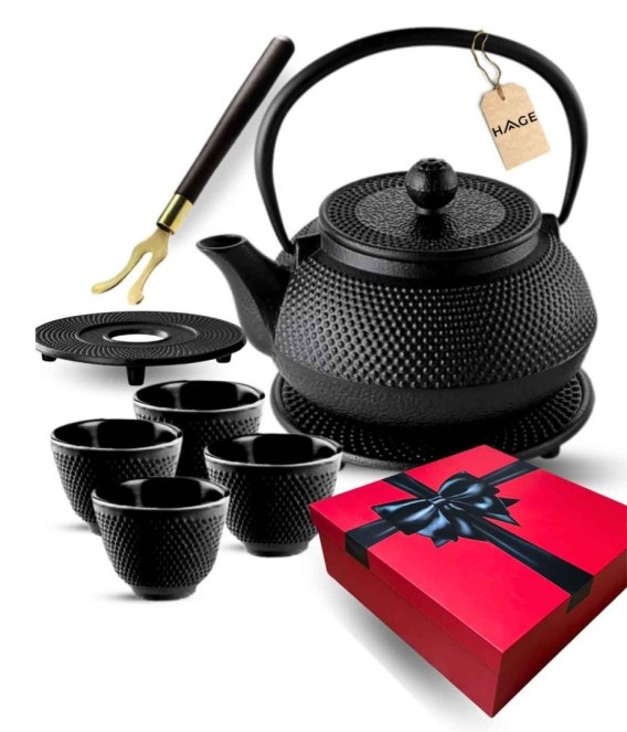 Żeliwo doskonale zatrzymuje ciepło, a emaliowana powłoka ułatwia utrzymanie czystości i poprawia estetykę. Czajnik wyposażony jest w ergonomiczny uchwyt oraz pokrywkę, a w zestawie znajdują się czarki, które umożliwiają komfortowe picie herbaty.
