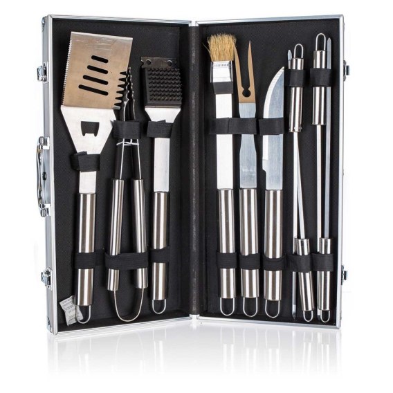 Cały zestaw zapakowany jest w masywną, elegancką walizkę aluminiową, która nie tylko ułatwia przechowywanie i transport, ale także nadaje zestawowi ekskluzywnego charakteru. To idealny pomysł na prezent dla każdego miłośnika grillowania!