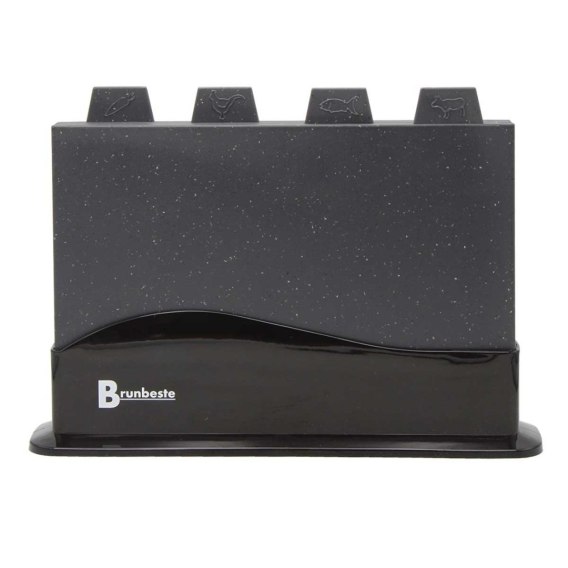 Zestaw desek do krojenia Brunbeste został zaprojektowany z myślą o codziennej wygodzie w kuchni. Wysokiej jakości materiał zapewnia trwałość. Zestaw umożliwia przechowywanie wielu desek jednocześnie. Oznakowanie pomaga wybrać deskę do odpowiedniego rodzaju żywności. Stojak sprawia że deski można wygodnie przechowywać przy czym nie zajmują dużo miejsca na blacie.