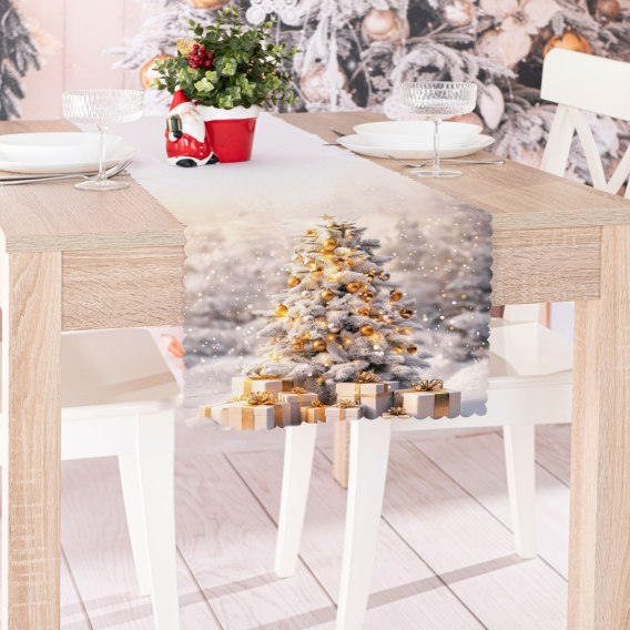 ZŁOTA CHOINKA Bieżnik NINA WODOODPORNA, 38x160cm, kolor 001 biało-złoty PBN368/KSP/C01/038160/1