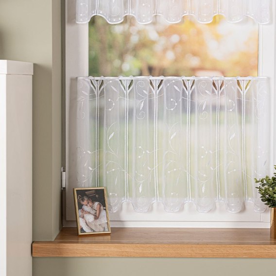 Zazdrostka panelowa haftowana na woalu, wysokość 45cm, kolor 001 biały 054464/233/001/000045/1