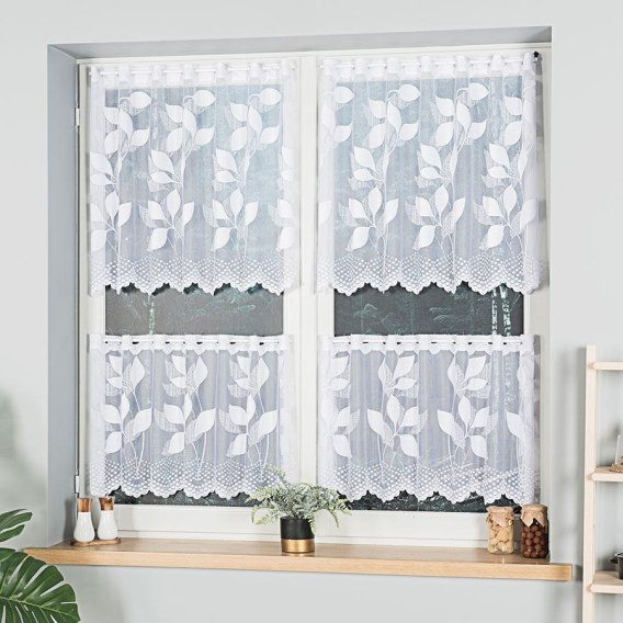 Zazdrostka o wysokości 50 cm świetnie sprawdzi się w kuchni, łazience, jadalni czy innych pomieszczeniach, gdzie chcesz subtelnie ozdobić dolną część okna, jednocześnie zachowując dopływ naturalnego światła. Biały kolor optycznie powiększa i rozjaśnia przestrzeń, wprowadzając do wnętrza świeżość i harmonię.