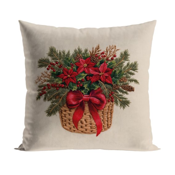 BUKIET W KOSZYKU Z EFEKTEM WYSZYWANIA Poszewka dekoracyjna VELVET, 40x40cm, kolor 004 beżowy PBN365/POP/004/040040/1