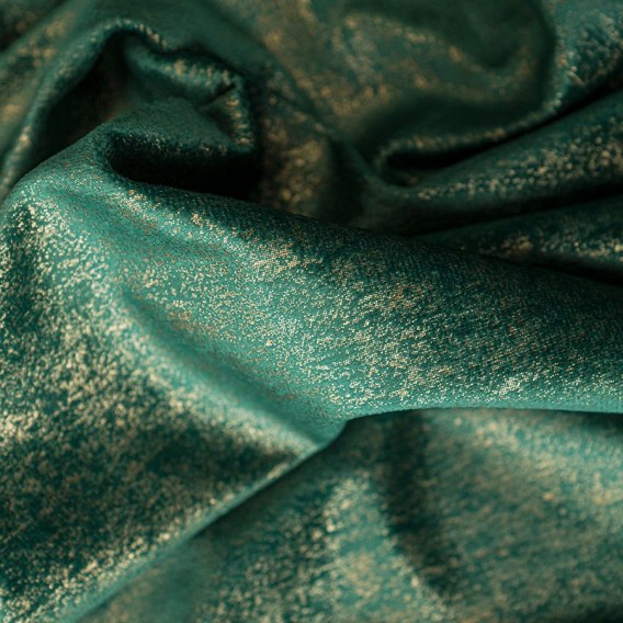 ELEONORA Zasłona gotowa na przelotkach, szerokość 140cm x wysokość 250cm, kolor 010 ciemny zielony; butelkowy ze złotym nadrukie