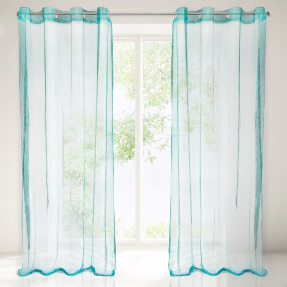 Firana gotowa o strukturze drobnej siatki szerokość: 140 cm, długość: 250 cm, kolor: turkusowy, Gramatura: 80 GSM, Skład: 100% poliester
