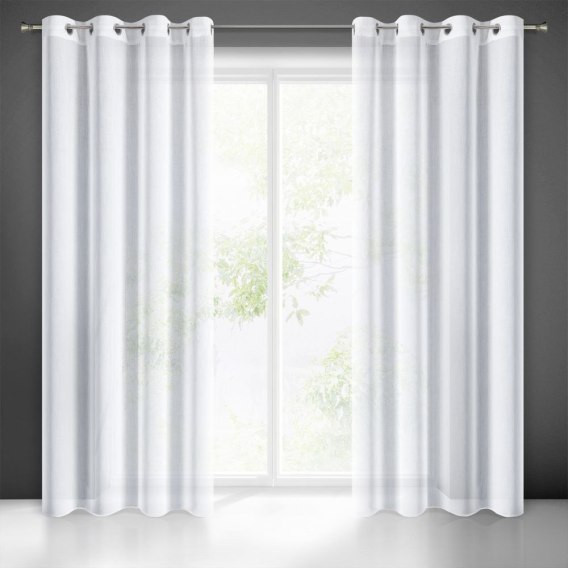 Firana gotowa gładka, jednokolorowa szerokość: 140 cm, długość: 250 cm, kolor: biały, Gramatura: 70 GSM, Skład: 100%poliester