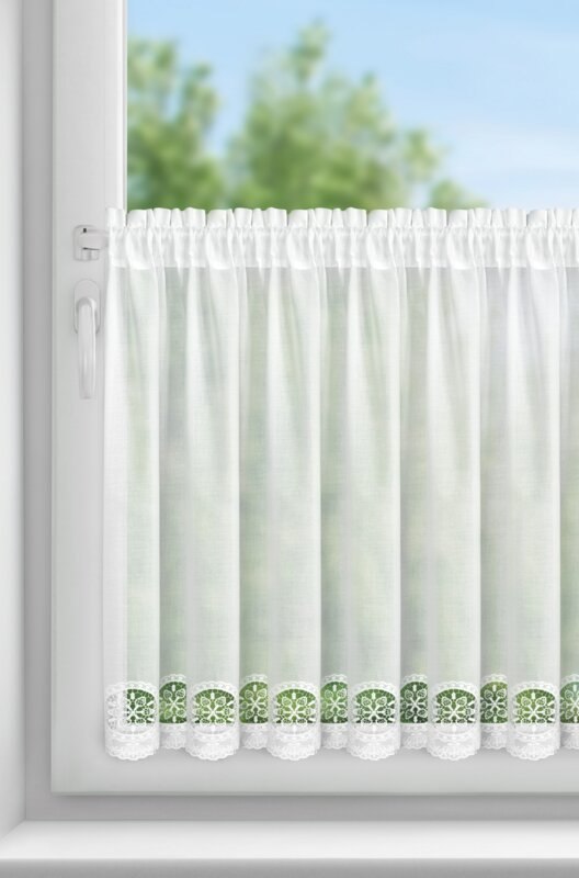 Zazdrostka gotowa bawełniana zdobiona haftem szerokość: 150 cm, długość: 70 cm, kolor: biały, Gramatura: 120 GSM, Skład: 100% bawełna