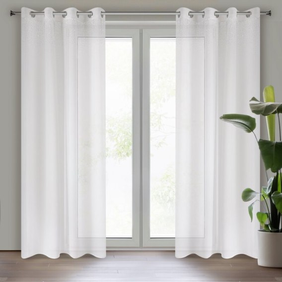 Gładka firana zdobiona srebrnymi dżetami szerokość: 140 cm, długość: 250 cm, kolor: biały, Gramatura: 70 GSM, Skład: 100% poliester