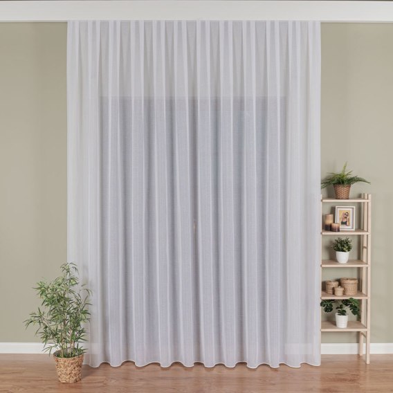 Firanka fantazyjna 400119 wykonana z poliestru jest trwała i odporna na odkształcenia. Materiał zachowuje biały kolor nawet po wielu praniach, szybko schnie i nie wymaga prasowania. Dzięki zastosowaniu ołowianki tkanina układa się elegancko na karniszu, tworząc efektowne fale.
