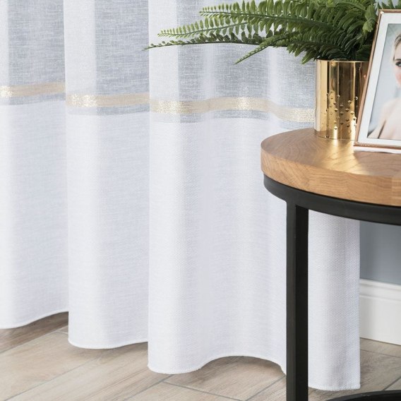 Firanka fantazyjna ze wzorem na samym dole z ołowianką, wysokość 250cm, kolor 003 biały ze złotym pasem 000641/000/003/000250/1