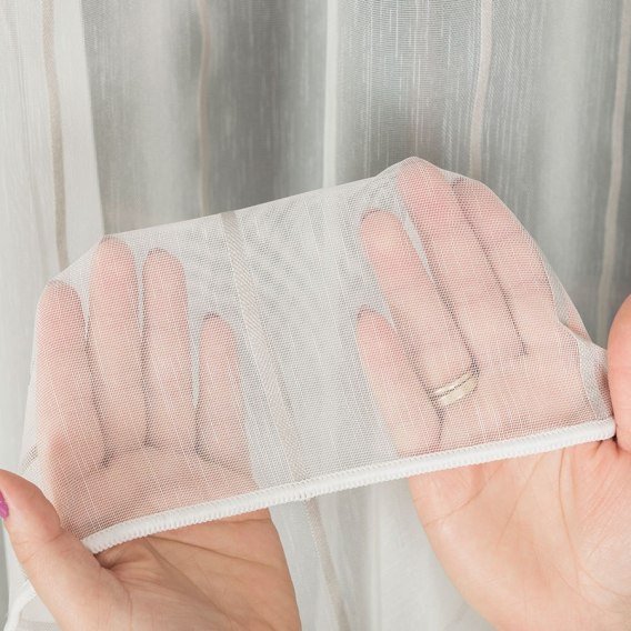 Firanka fantazyjna ze wzorem pasowym z ołowianką, wysokość 305cm, kolor 113 offwhite z jasnoszarymi pasami 001166/OLO/113/000305