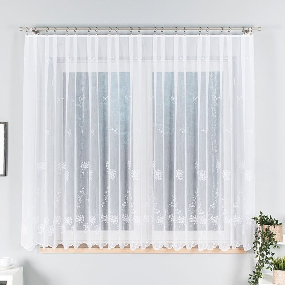 Wykonana z wysokiej jakości 100% poliestru, firanka jest trwała, odporna na zagniecenia i łatwa w pielęgnacji. Haftowana struktura materiału podkreśla elegancki wygląd firany, która przez długi czas zachowuje estetyczny i świeży wygląd.