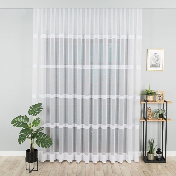 Firanka wykonana jest z wysokiej jakości 100% poliestru, co zapewnia trwałość, odporność na zagniecenia i łatwość pielęgnacji. Haftowana struktura materiału dodaje elegancji i dekoracyjnego wyrazu oknom, zachowując przy tym lekkość i estetyczny wygląd przez długi czas.