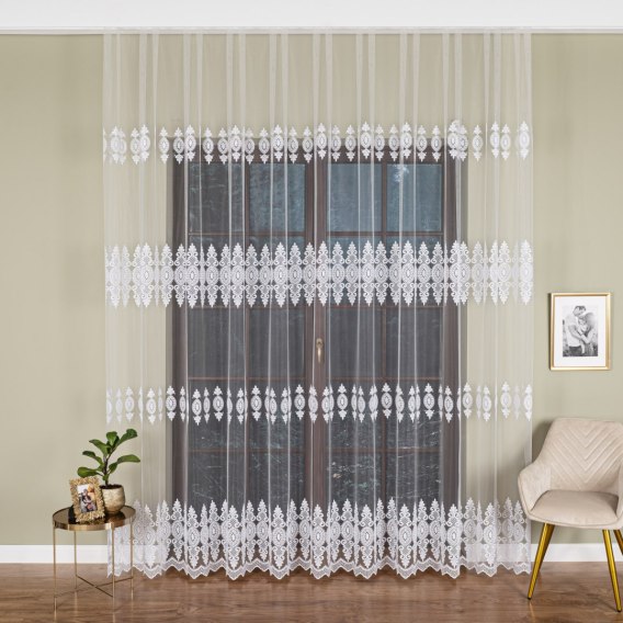 Wybierając firankę haftowaną na metry FH0017, otrzymujesz dekorację okienną, która łączy elegancję z funkcjonalnością. Firanka delikatnie filtruje światło, zapewnia prywatność i tworzy przyjemną atmosferę w dużych wnętrzach, nie ograniczając dostępu naturalnego światła.