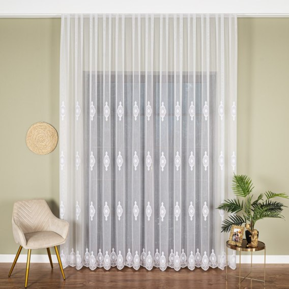 Firanka haftowana na metry FH0030 wysokość 285 cm kolor biały