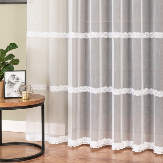 Firanka haftowana ze wzorem na samym dole, wysokość 290cm, kolor 001 biały 013417/MIR/001/000290/1
