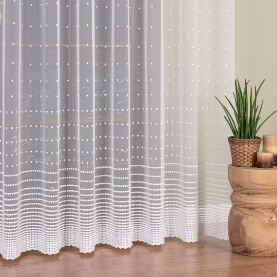Firanka haftowana ze wzorem pasowym, wysokość 290cm, kolor 001 biały 006112/885/001/000290/1