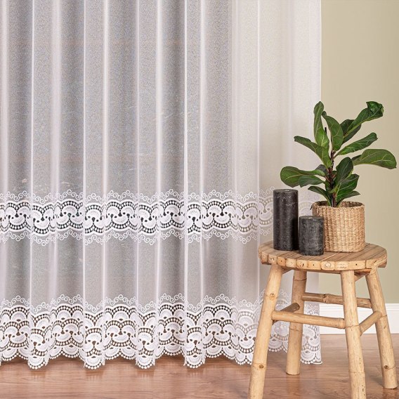 Firanka z aplikacją ze wzorem pasowym na markizecie, wysokość 280cm, kolor 001 biały 009397/433/001/000280/1