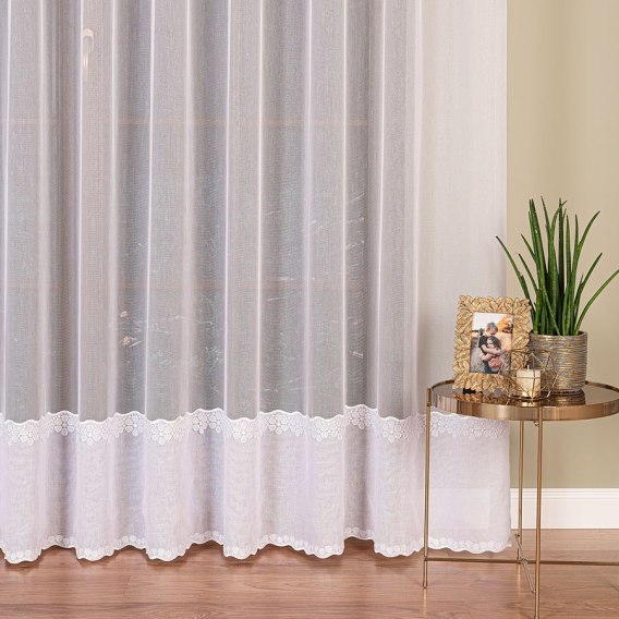 Firanka z aplikacją ze wzorem pasowym na markizecie, wysokość 280cm, kolor 001 biały 009418/178/001/000280/1