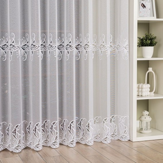 Firanka z aplikacją ze wzorem pasowym na markizecie, wysokość 280cm, kolor 001 biały 162035/433/001/000280/1