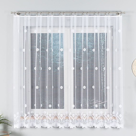 Firanka została wykonana z wysokiej jakości 100% poliestru o gramaturze 66 g/m², co zapewnia odpowiednią lekkość, a jednocześnie trwałość i odporność na zagniecenia. Materiał nie wymaga prasowania i przez długi czas zachowuje estetyczny wygląd. Firanka 004421 to harmonijne połączenie funkcjonalności z ponadczasową elegancją.