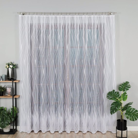 Biała firanka żakardowa pasuje do wnętrz urządzonych w różnych stylach – klasycznym, nowoczesnym, skandynawskim oraz minimalistycznym. Firanka 007505 subtelnie zdobi okno, nie przytłaczając przestrzeni i podkreślając elegancki charakter pomieszczenia.