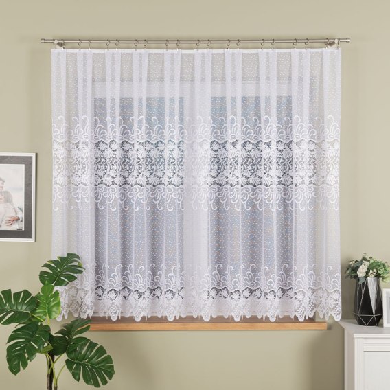 Firanka żakardowa na metry 018965 to sprawdzony wybór dla osób poszukujących klasycznej, trwałej i łatwej w pielęgnacji dekoracji okiennej, która harmonijnie dopełni każde wnętrze.